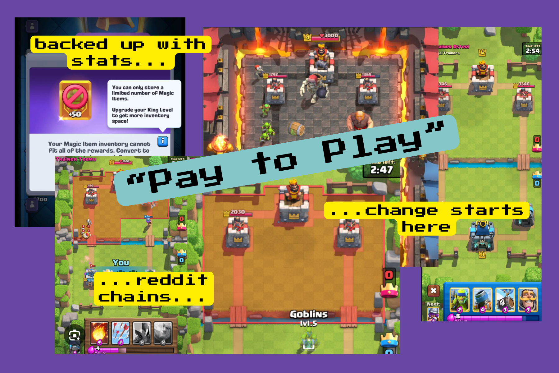 I’m not the only person to think so…in a Royale API discussion, most of the comments’ main addressed concern was how the game was a "cash grab and how the game is “not fun…not fair” (Finnslss).